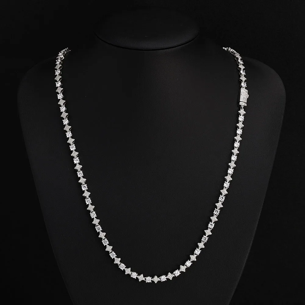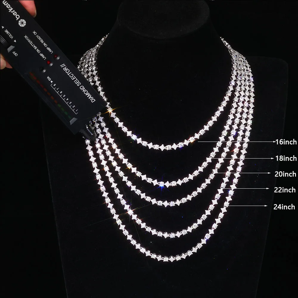 Experience a striking balance of brilliance and edge with this moissanite chain necklace, crafted from genuine 925 sterling silver. Designed for both men and women, it features high-clarity, lab-created moissanite stones that deliver exceptional fire and radiance comparable to natural diamonds.